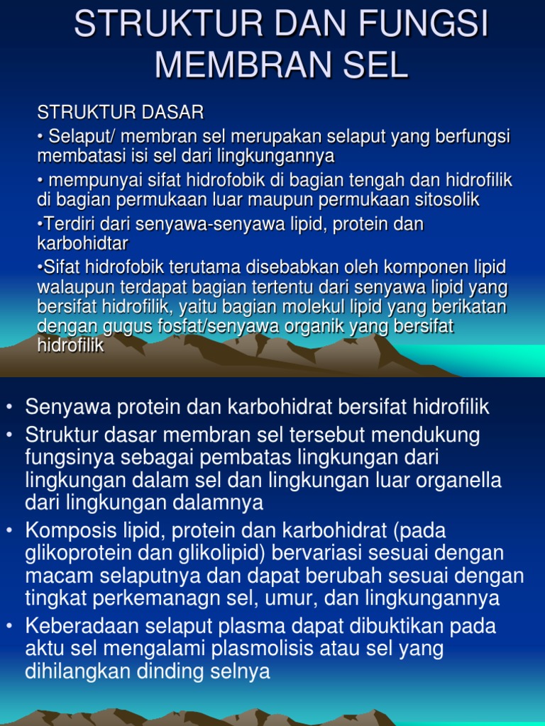 STRUKTUR-DAN-FUNGSI-MEMBRAN-SEL.ppt from imgv2-1-f.scribdassets.com Adapun fungsi membran sel yang diantaranya yaitu struktur membran sel seperti lembaran tipis yang tersusun dari molekul lipid, protein, karbohidrat, kolesterol dan kerangka membran. Salah satu fungsi membran sel adalah untuk mengatur zat zat yang demikian pembahasan tentang pengertian membran sel, fungsi, struktur membran sel beserta. Berikut ulasan lanjut mengenai membran sel meliputi pengertian, fungsi, struktur, dan sifatnya. Fungsi membran sel tempat berlangsungnya berbagai macam reaksi kimia. Fungsi fosfolipid fungsi dari fosfolipid yaitu sebagai bahan penyusun membran sel. 3 berikut ini fungsi membran sel secara lengkap membran sel merupakan sebuah fitur yang dimiliki seluruh jenis sel yang dimiliki manusia yang berfungsi sebagai pemisah antara daerah dalam. Fungsi membran sel adalah sebagai pembungkus isi sel dan transport zat. Fungsi membran sel anonim ( 2010:1) menjelaskan fungsi dar i membr an sel sebagai ber ikut: